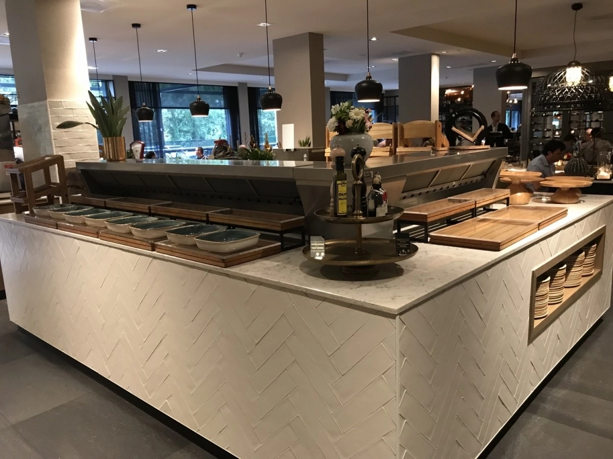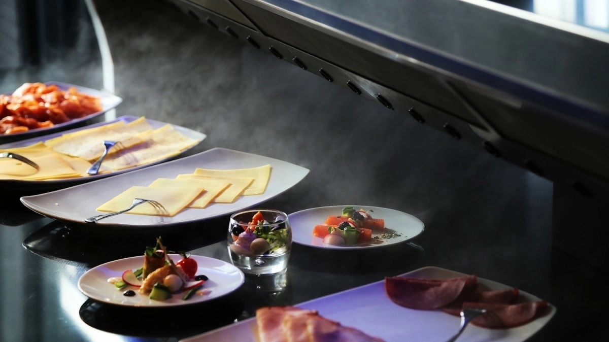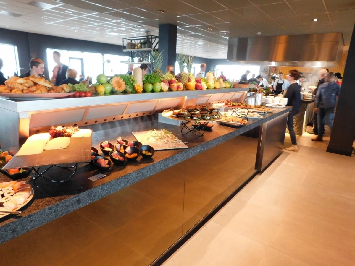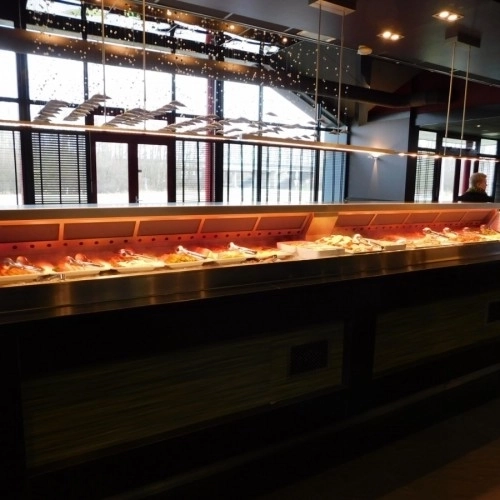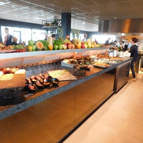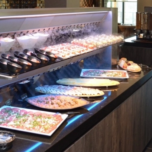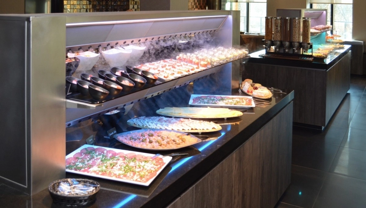 Ce type de buffet froid, souvent combiné avec une partie chaude, est souvent vu dans les hôtels du restaurant du petit-déjeuner et du déjeuner.