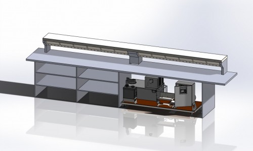 De Cool-Spot techniekunit, koelpowerpack, onder de console in het meubel is aangesloten op het DX centraal koelsysteem van het gebouw. In het meubel komen ook de technische aansluitingen voor Stroom, Water, Rioolafvoer en Data.
